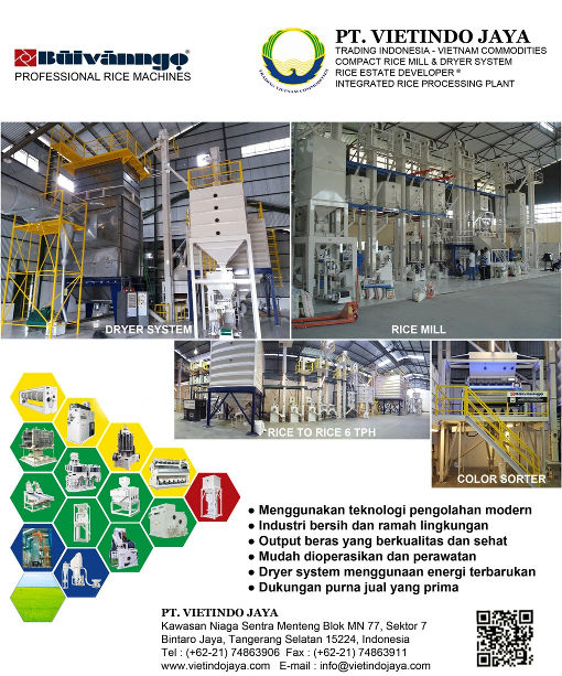 PT. VIETINDO JAYA adalah perusahaan General Trading Ekspor dan Impor khususnya di bidang pertanian antara Vietnam dan Indonesia, telah ditunjuk menjadi Country Agent untuk Mesin Pengolahan Gabah-Beras Modern merk BuiVanNgo®, Vietnam sejak tahun ‘2004.